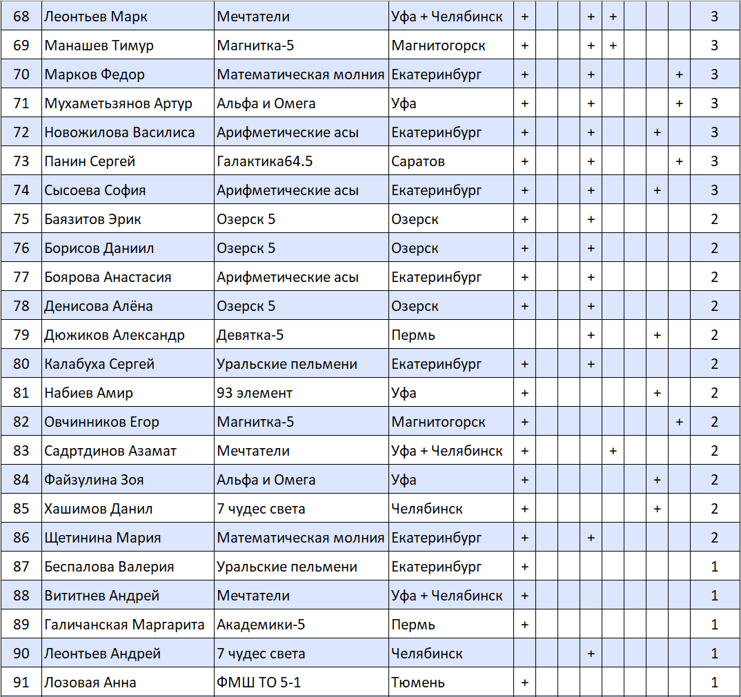 Результаты математических боев, 5-е классы