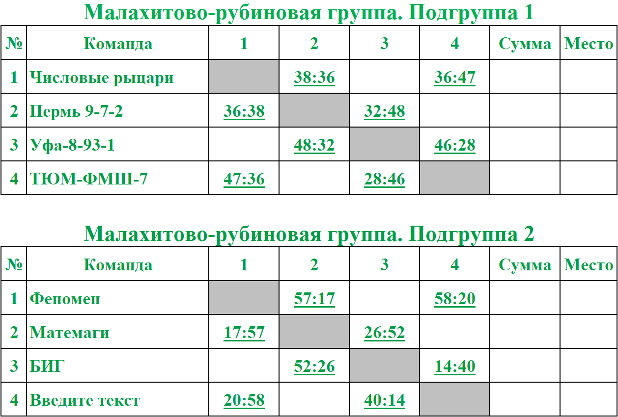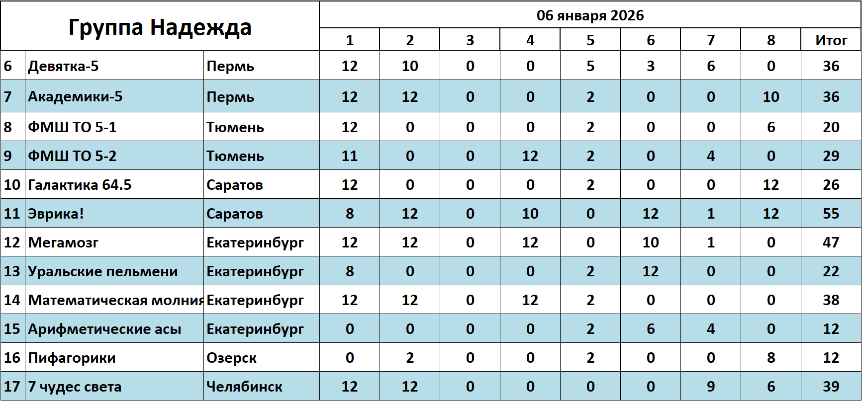 Итоги матбоев. Группа "Надежда", 5-е классы