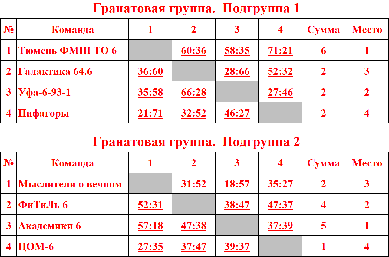 Итоги матбоев. Группа "Надежда", 5-е классы.