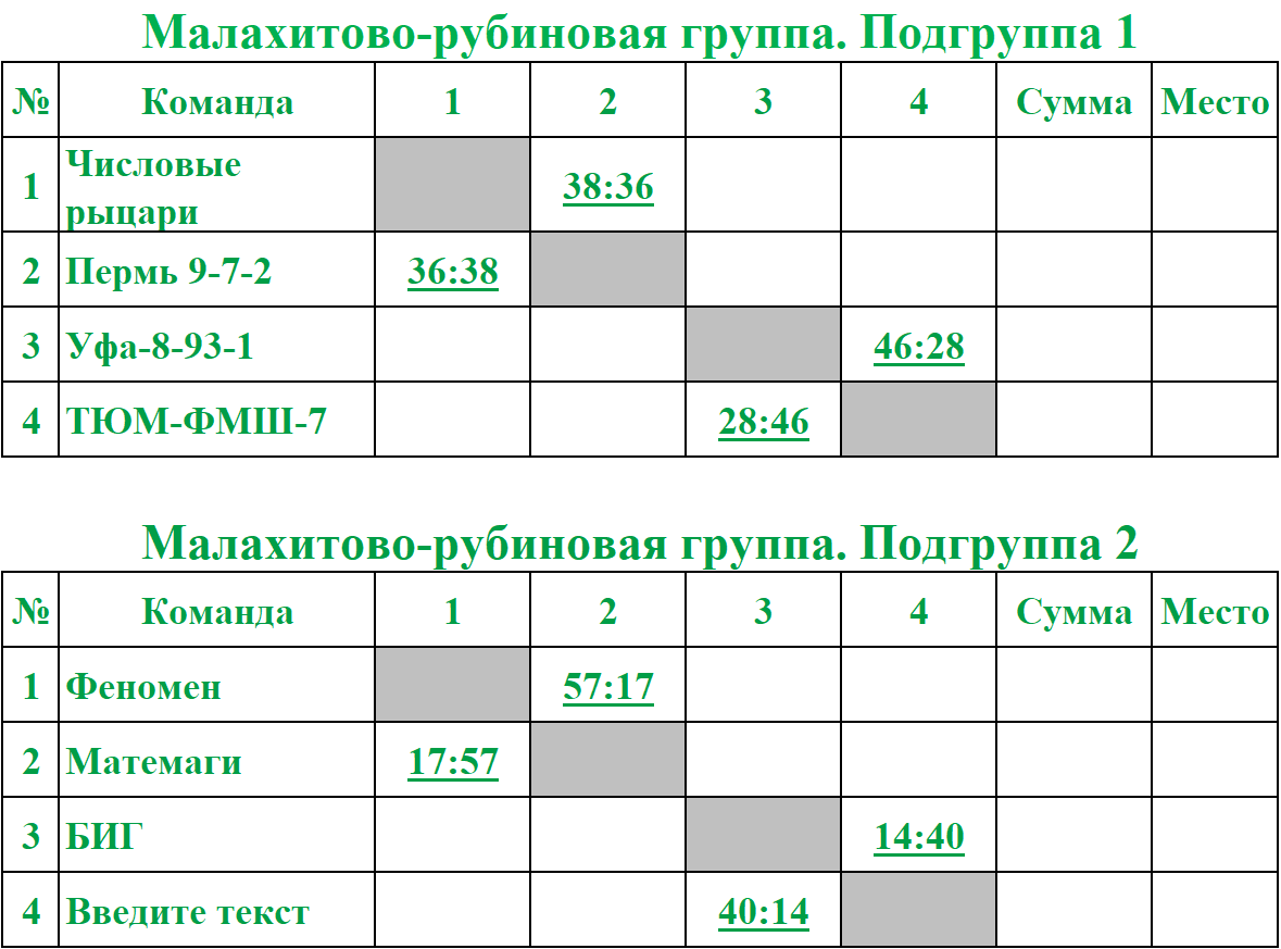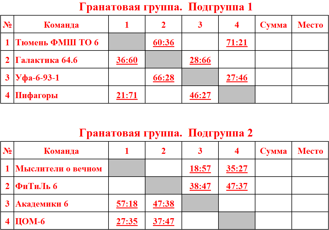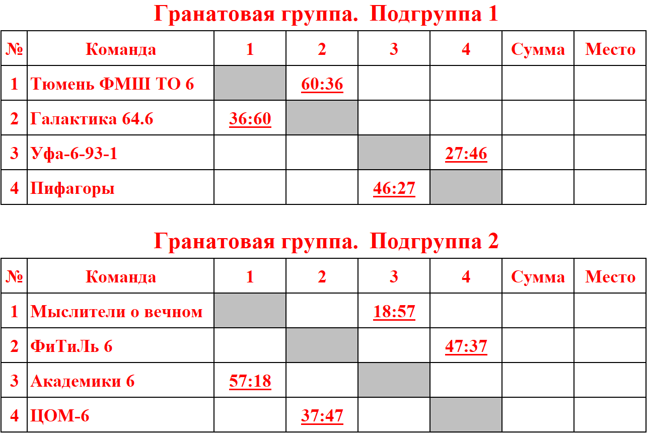 Итоги матбоев. Группа "Надежда", 5-е классы.