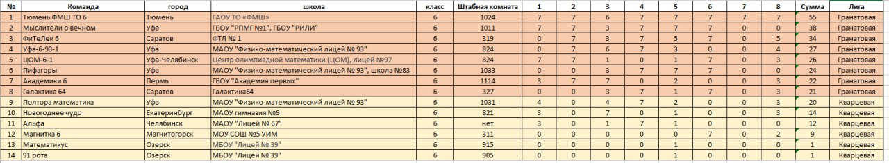 Результаты командной олимпиады (6 классы)