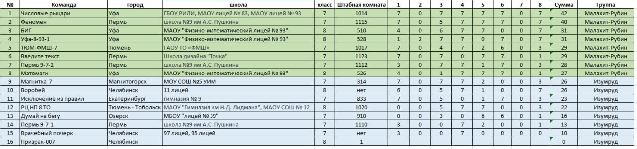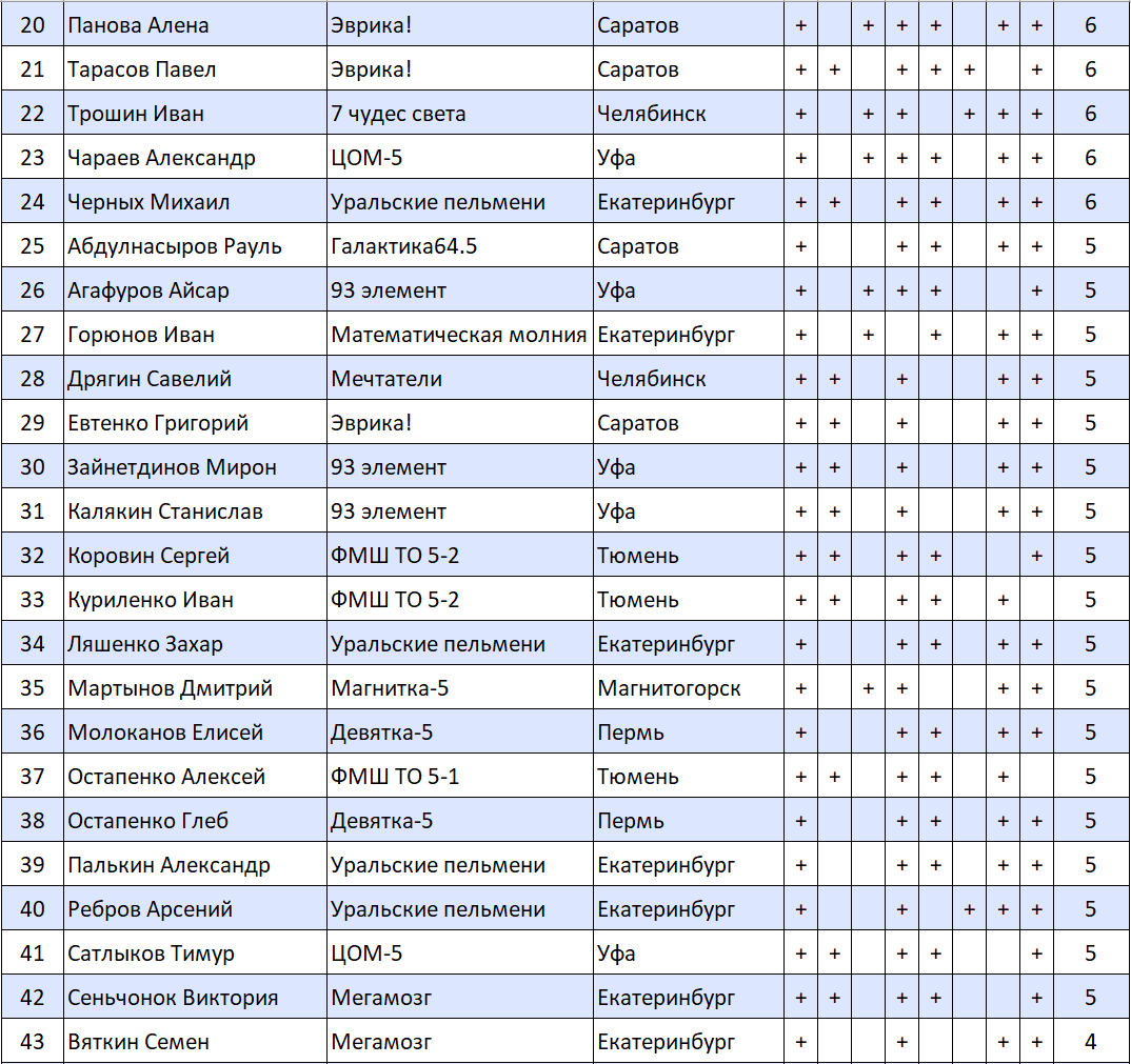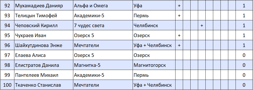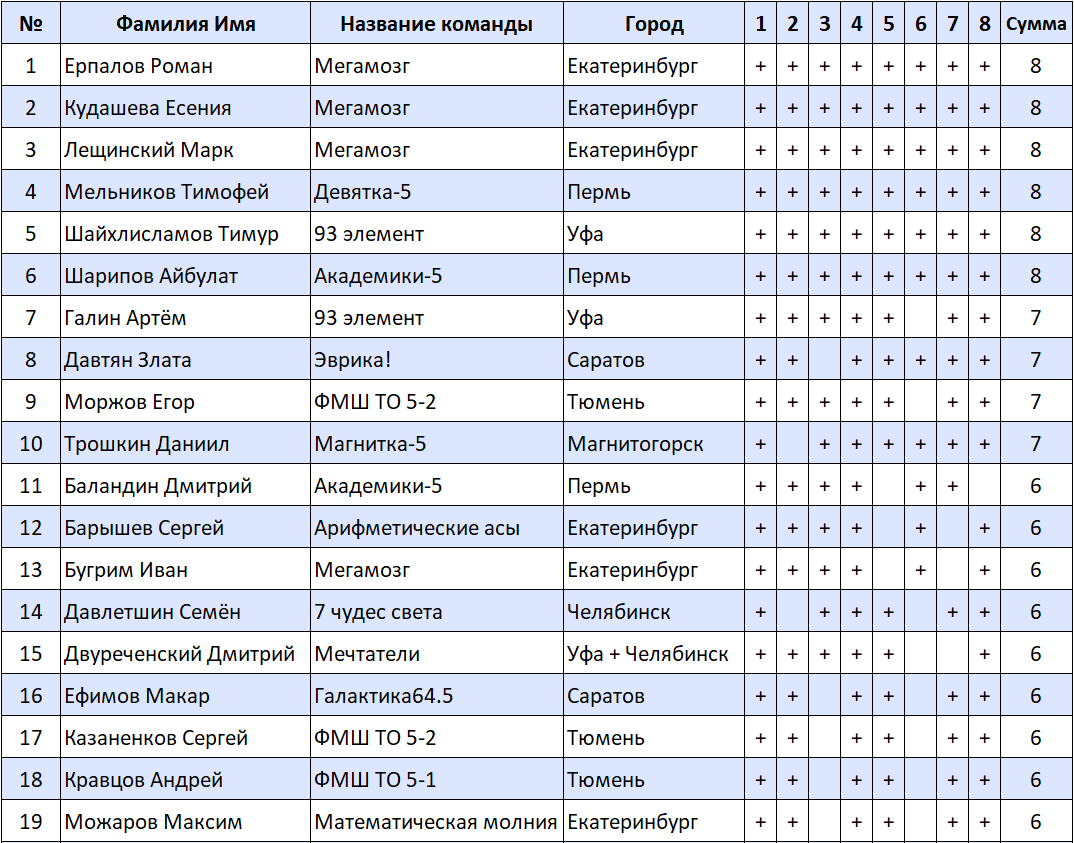 Результаты математических боев, 5-е классы